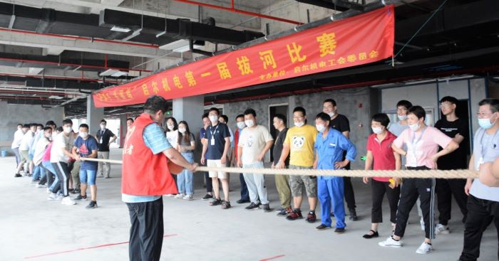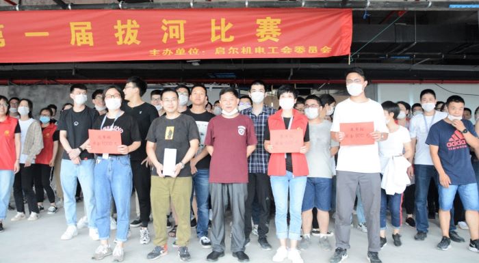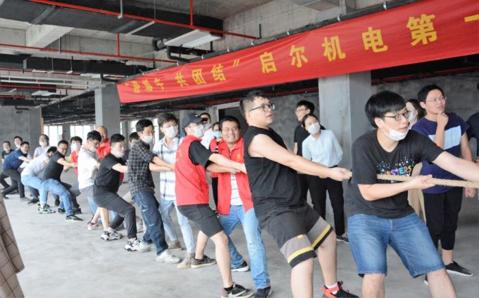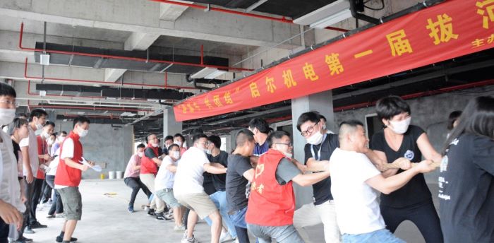 “一二,加油!一二,加油!”2020年6月19日下午,加油声、欢呼声回荡在启尔办公楼二楼,正在进行启尔第一届“迎佳节、讲团结、聚合力”员工拔河比赛。