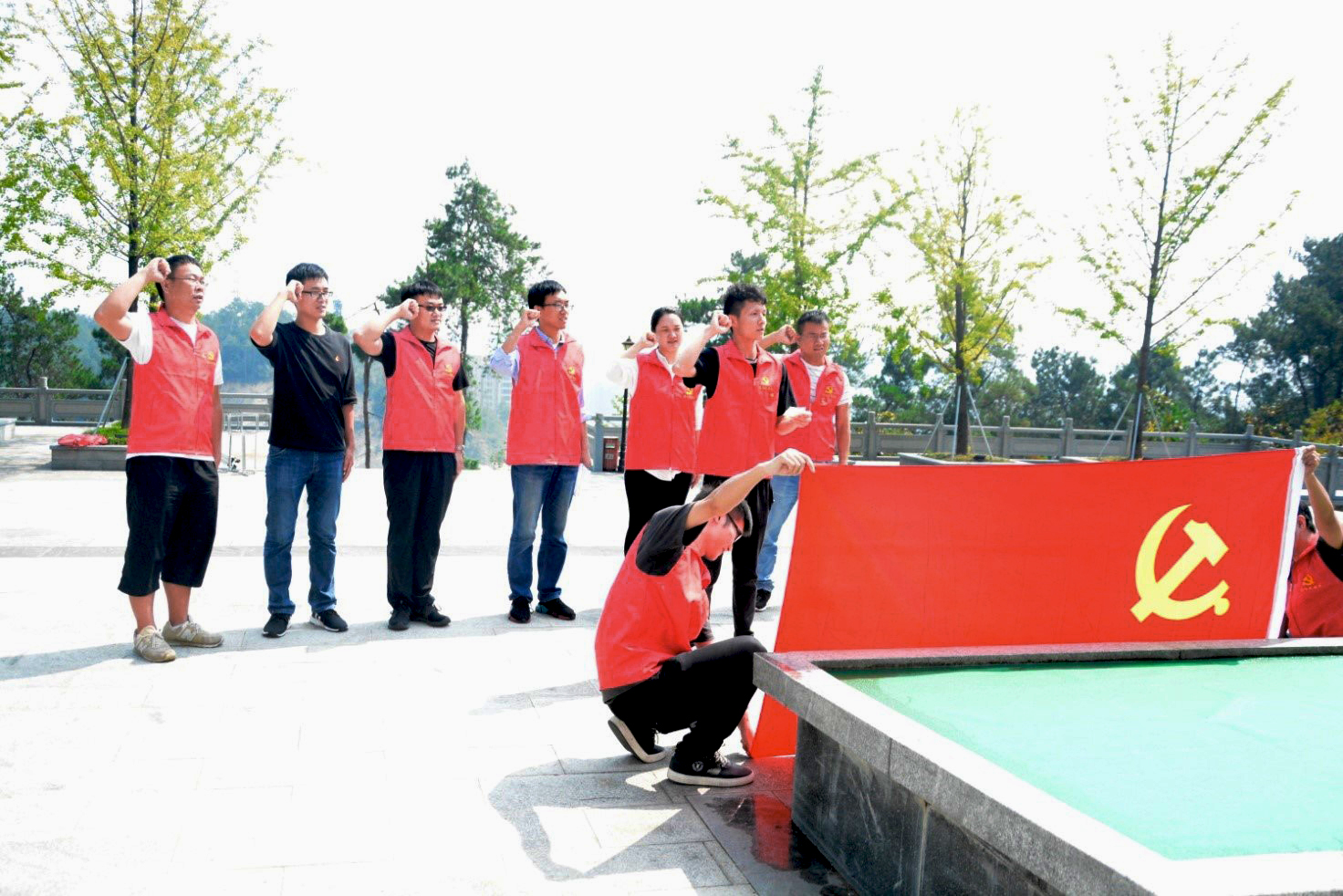 在纪念碑下,党支部组织委员池优阳同志带领全体党员,面对鲜红的党旗,重温入党誓词。庄严肃穆的宣誓、铿锵有力的誓词,使每一位党员接受了一次深刻的精神洗礼。随后,全体党员参观了历史纪念馆,大家被革命先烈为新中国、为家乡的解放事业不屈不挠、奋勇作战,不畏牺牲的崇高精神感动。